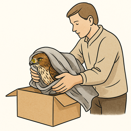 - Achtung: Greifvögel haben scharfe Krallen! Dickere Handschuhe anziehen (Garten- oder Lederhandschuhe).